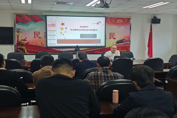 邀请黄应县律师作《以宪赋能 民政为民——宪法精神在民政实务中的具象化与实践》主题宣讲。局机关全体干部职工及直属各单位负责人参加。